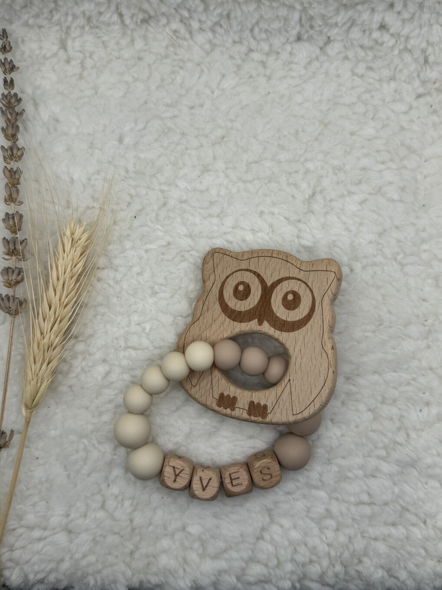 De bijtringen die ik maak worden met de hand gemaakt. Ook bij de bijtringen is het mogelijk om hem te personaliseren met de naam van je kindje. Hiervoor gebruik ik siliconen of onbewerkte houten kralen. Dit kan je helemaal zelf uitkiezen. En hoe leuk is het om een bijtring te combineren met een bijpassend speenkoord, voor jezelf of als cadeautje.