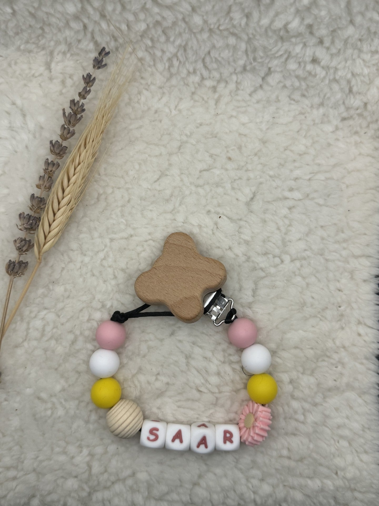In het kader van de veiligheid zijn de speenkoorden met clip maximaal 30cm lang. Wanneer er een naam op een speenkoord komt, zal ik het aantal kralen aanpassen waardoor het speenkoord niet te lang wordt. Wij maken al onze speenkoorden zelf. Wij werken volgens de Europese Veiligheidsnormen (NEN 12586).